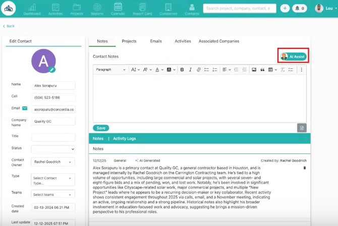 Using AI Assist at the contact level helps maintain consistent messaging across individual communications.