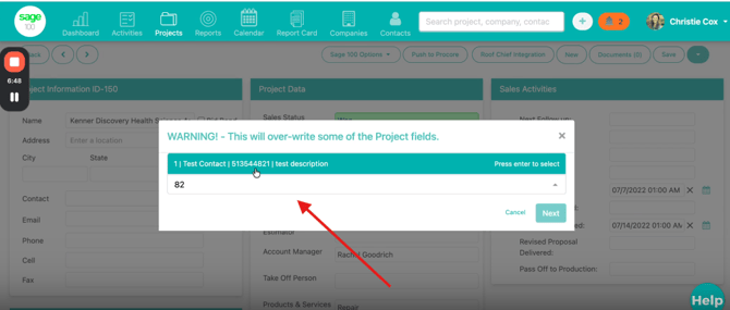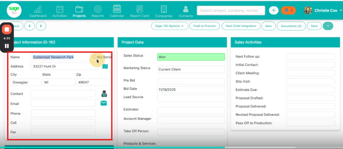 The project will reload with all information synced from Sage, including: