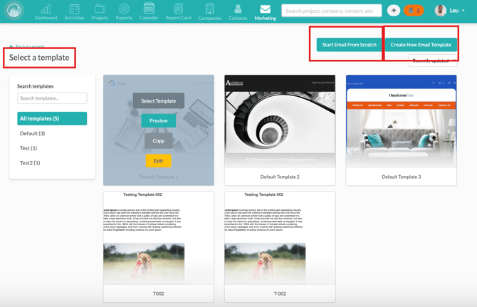 Select your template to open the Email Builder.