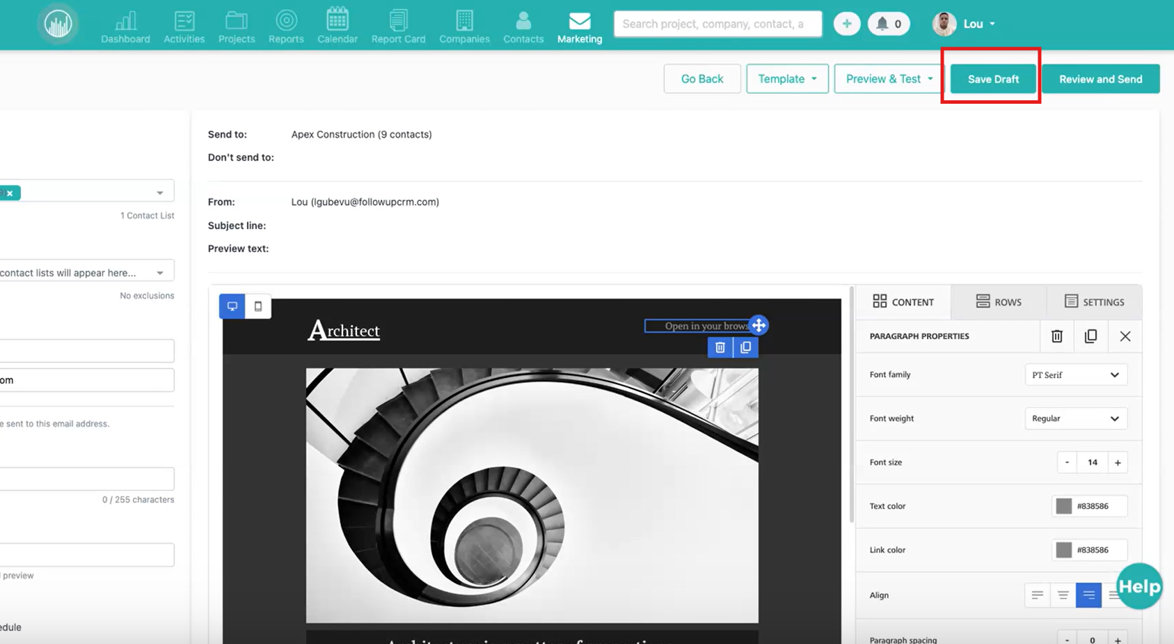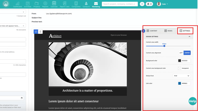 Your marketing email is sent and tracked directly within Followup CRM.