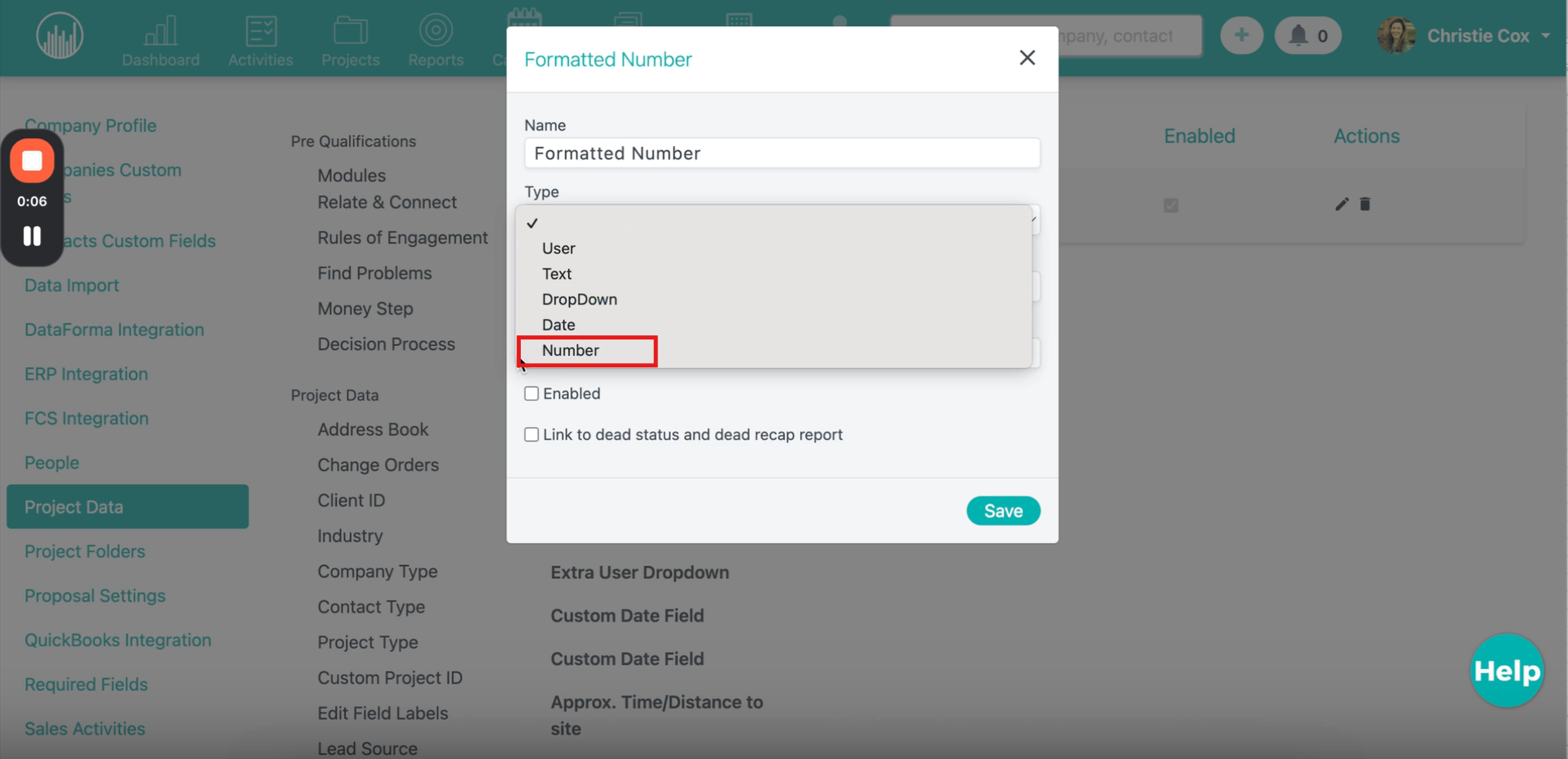 📄 Open Project page → scroll to Project custom fields → find Formatted Number