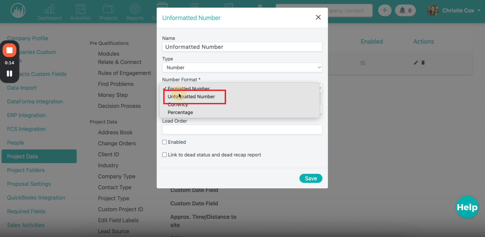 - 📄 Open Project page → scroll to Project custom fields → find Unformatted Number at bottom of section