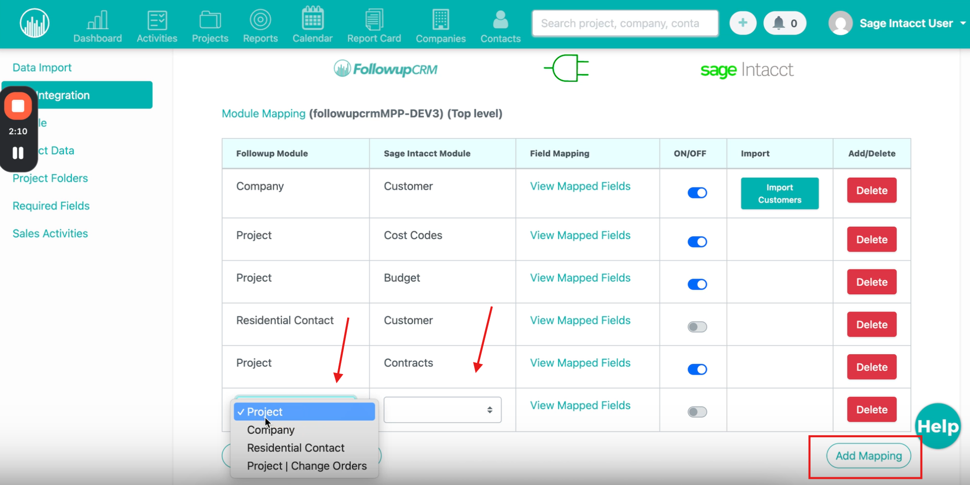 Learn how to connect, configure, and map your Sage Intacct modules to FollowUp CRM for seamless data syncing.